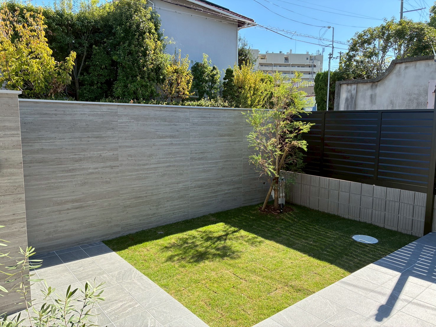 外からの視線をしっかり遮りつつも、閉鎖的な印象にならないよう、塀の高さや配置を細かく調整しました。