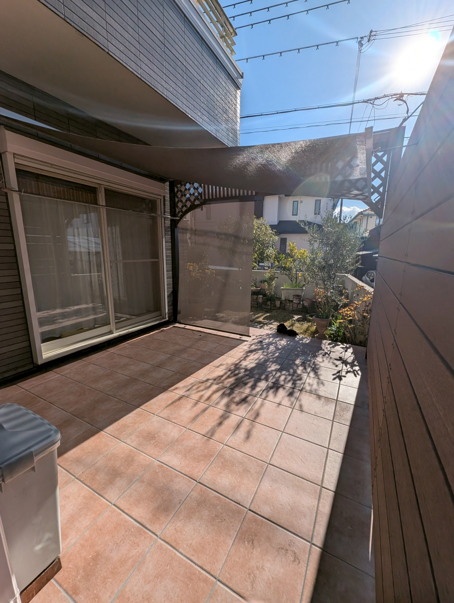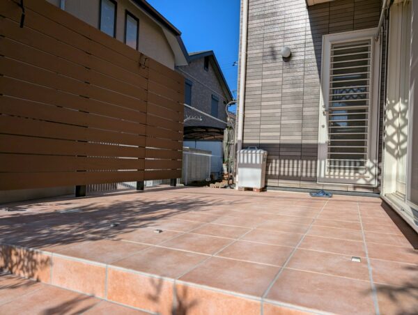 ウッドデッキのあった場所には広々としたタイルデッキを作り、屋外でも快適に過ごせる空間にしています♪