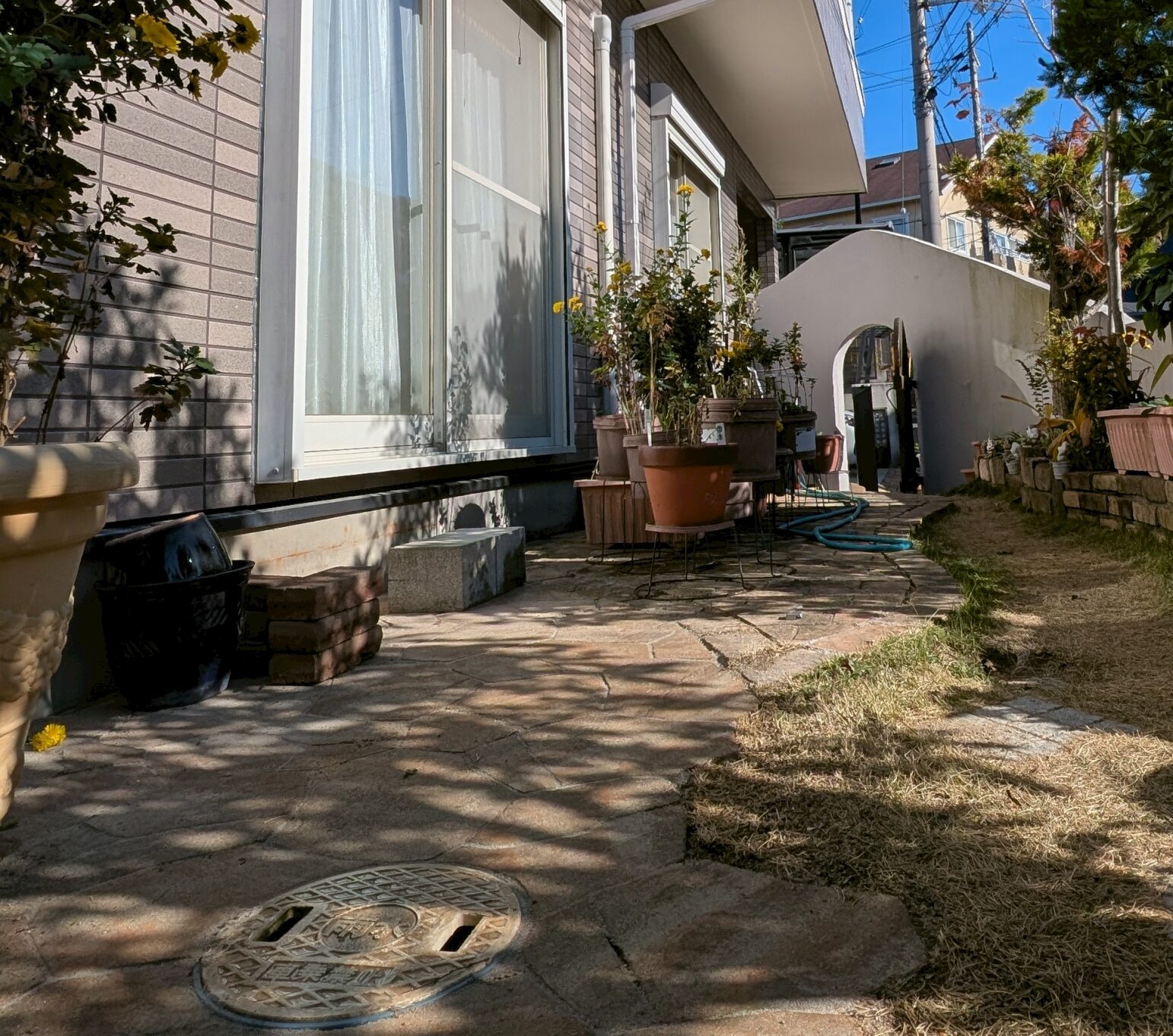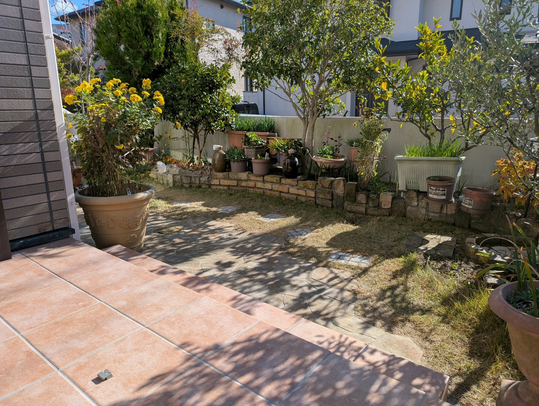 既存のレンガとも色や形を合わせて、自然に馴染む歩きやすいアプローチになっています。